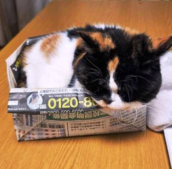 妻お手製のゴミ箱に気持ちよさそうに収納されていました。。。