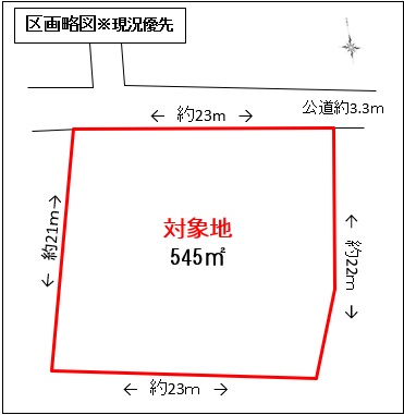 土地面積計測方式 | 公簿 | 土地面積 | 545m² |