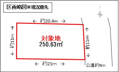 土地面積計測方式 | 公簿 | 土地面積 | 250.63m² |