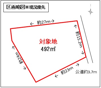 土地面積計測方式 | 公簿 | 土地面積 | 492m² |