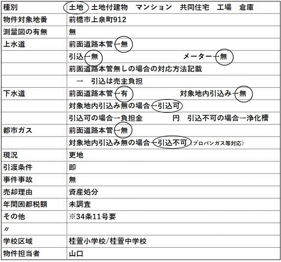 コメント | 物件等についてのお問い合わせは、可能な限りメールやFAXにてお願い致します。 電話でのお問い合わせの場合には、担当者が電話対応中や外出中の場合には出られない事が ありますので、ご理解いただけると助かります。 カーナビ入力:前橋市上泉町914-1付近 |