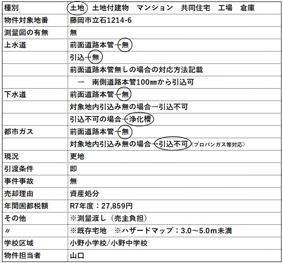 | コメント | 物件等についてのお問い合わせは、可能な限りメールやFAXにてお願い致します。 電話でのお問い合わせの場合には、担当者が電話対応中や外出中の場合には出られない事が ありますので、ご理解いただけると助かります。 カーナビ入力:藤岡市立石1214付近 |