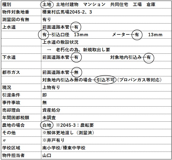 | コメント | 物件等についてのお問い合わせは、可能な限りメールやFAXにてお願い致します。 電話でのお問い合わせの場合には、担当者が電話対応中や外出中の場合には出られない事が ありますので、ご理解いただけると助かります。 カーナビ入力:榛東村広馬場2045